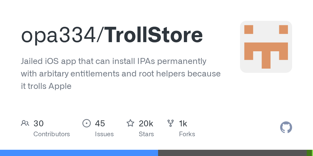 TrollStore 的作者是 Lars Fröder,或者更广为人知的网名 opa334 。 除了 TrollStore,这位大佬还开发了 Dopamine 越狱,可以说是非常强了👍︎